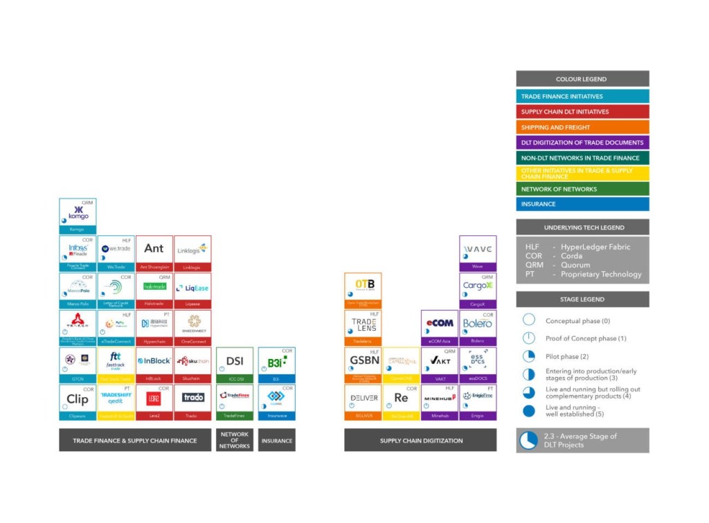 This is our periodic table of DLT projects, which differentiates the 39 different initiatives, companies and projects within trade.