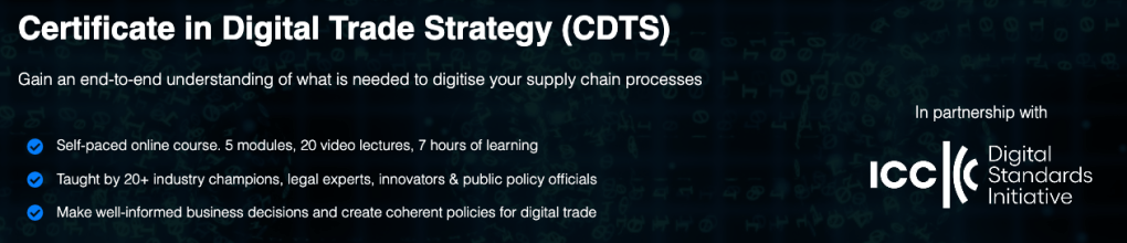 The ICC Academy has launched a new certification programme titled “Certificate in Digital Trade Strategy”. I recently completed the course and thought I’d share my takeaways in this brief post. As a practitioner in the field of digital trade finance innovation, I’m hoping my perspective can help you assess whether the course would be useful to you as well.